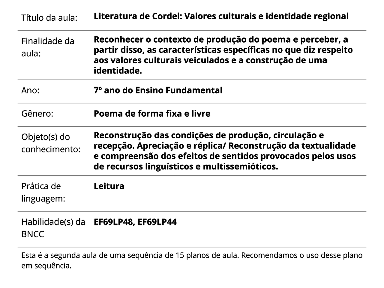 Plano De Aula 7º Ano Lingua Portuguesa Literatura De